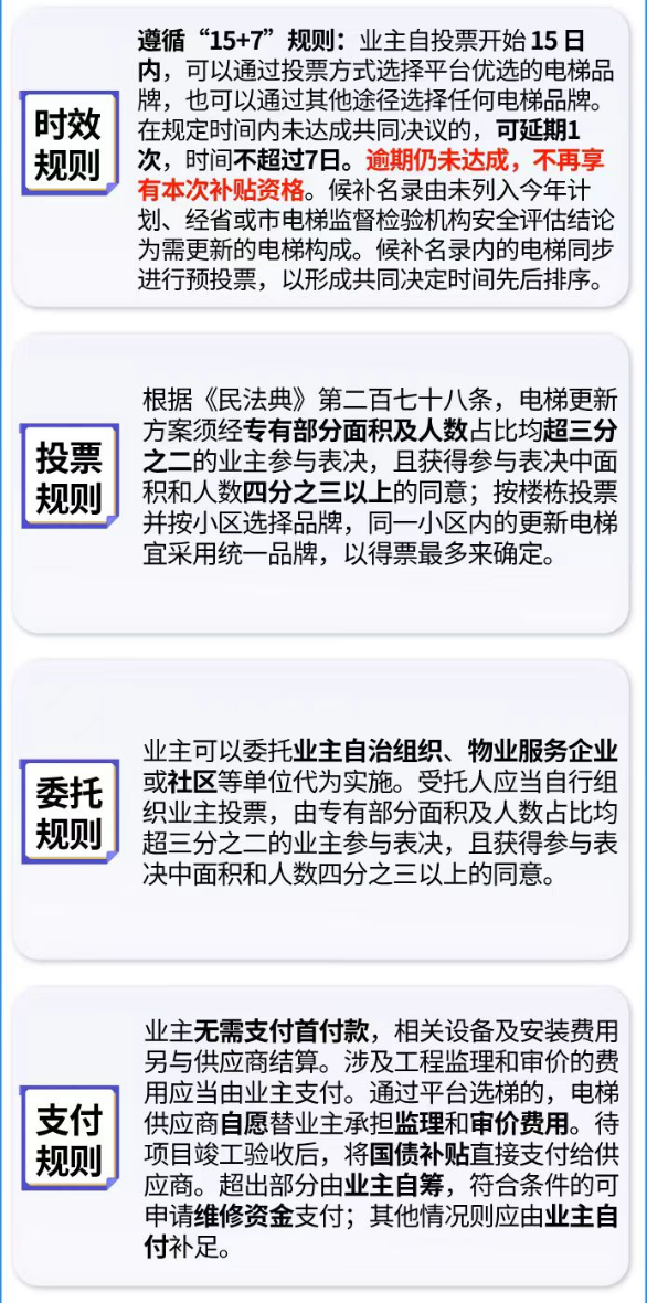 据了解◈✿✿◈,超长期特别国债支持住宅老旧电梯更新◈✿✿◈,这项政策源自2024年初国家出台的《推动大规模设备更新和消费品以旧换新行动方案》◈✿✿◈,国家发展改革委◈✿✿◈、财政部统筹安排3000亿元左右超长期特别国债资金予以支持◈✿✿◈,住宅电梯更新就是其中的一部分◈✿✿◈。